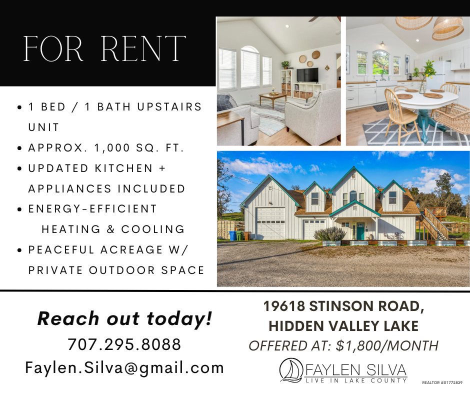 #HomeForRent #LiveInLakeCounty #HiddenValleyLake #Ranchos #RentalProperty #FaylenSilva #Realtor #HiddenValleyLakesTopRealtor